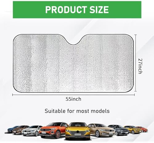 Product Specifications: You will receive 1 piece of 55.1″ x 27.5″ windshield sunshade, achieving perfect coverage with 0 light transmission and improving driving experience. You can check the windshield size before ordering to ensure a perfect fit.