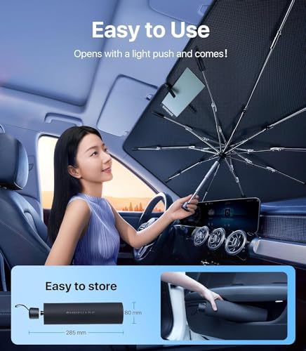 [2024 Newest] andobil Car Windshield Sun Shade Umbrella -Super Heat Insulation Protection- Foldable Sunshade for Car Windshield -Car Accessories Interior -Easy to Use-Out Keeps Car Cool – Large