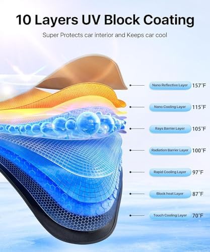 [Expert Windshield Sun Shade for Car] Our Master Sun Shade car windshield with Super Heat Insulation Protection Function is designed to keep the car cool for every driver’s experience. With innovative military-grade design and Unique ice crystal nanomaterials, they can ensure 100% reflection of all sunlight and sun rays. Create a comfortable ambiance and cool, refreshing driving atmosphere that suits your car best.