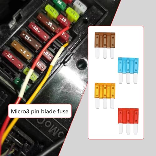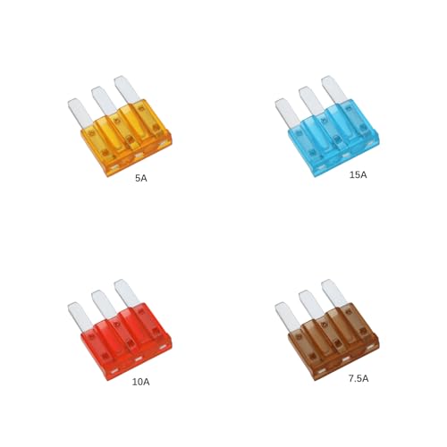 Package includes 20 pieces of RV 5A-15 AMP Micro3-pin insert fuses, 5PCS each of 5 AMP 7.5 AMP 10 AMP 15 AMP fuses.
