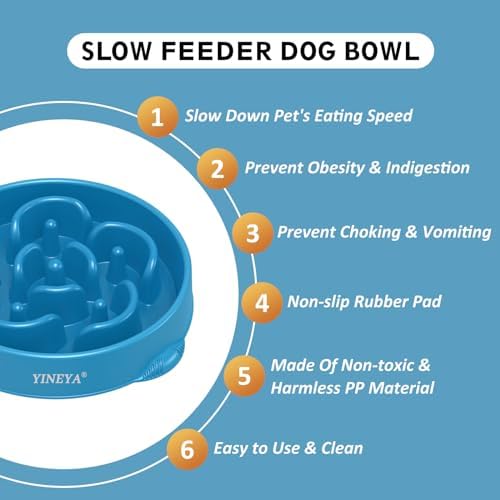 SLOW DOWN DOG’S EATING – Are you still worried that your dogs wolf their food down causing bloat, choking and other health issues? YINEYA large slow feeder dog bowls large breed can replace the regular dog bowls large sized dog to prevent the dog from eating too fast. With unique maze design, our small dog slow feeder bowl small breed and slow feeder cat bowl can allow dogs to chew food more slowly and reduce digestive problems, enhancing oral sensation and the process of enjoying food.