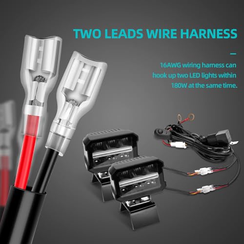 9.8FT 16AWG Wiring Harness Kit-2 Leads LED Light Bar ON/Off Switch Power Relay Bult-in Blade Fuse 40A for Off Road Boat Light Pods, Replacement for DC 12V Heavy Duty Truck Pickups Wire Harness