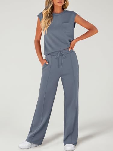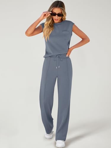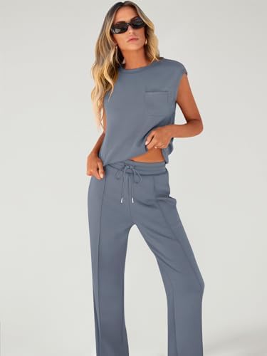 ANRABESS Women’s Summer 2 Piece Outfits Casual Sleeveless Sweatsuits Matching Wide Leg Tracksuits Lounge Sets Fashion Clothes