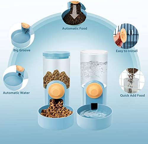 【Automatic Food Water Dispenser 】: Our food water dispenser set will save time instead of having to put food in non-stop, they are very convenient that you don’t have to refill the cat food and water daily. They use the gravity system like the top loading water dispenser consistently providing fresh water and food, helping keep the water somewhat cleaner. The feeder has a large food outlet and 75° ramp, so food can be smoothly filled. No electricity is needed.