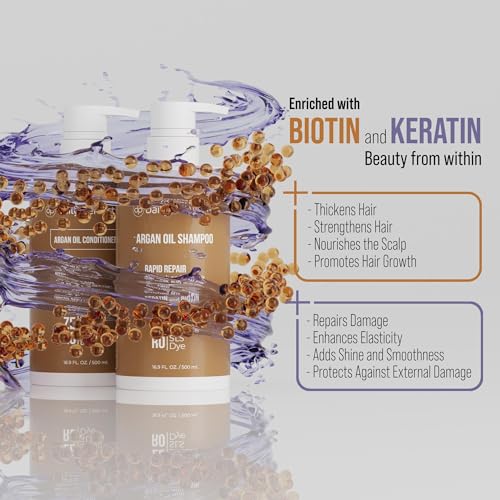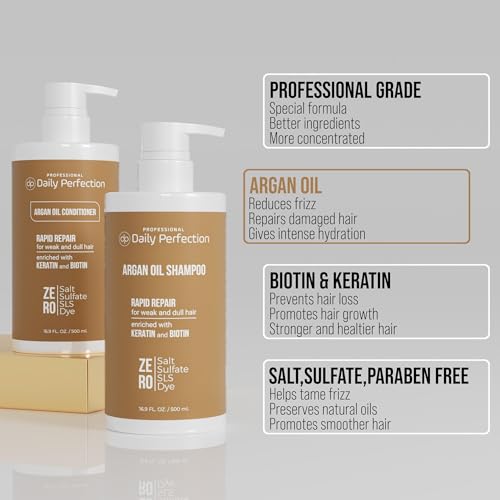 Argan Oil Shampoo and Conditioner Set with Biotin and Keratin, Salt-Free, Sulfate-Free, Paraben-Free, for Rapid Repair and Improvement in Weak and Dull Hair. By Daily Perfection Professional Series