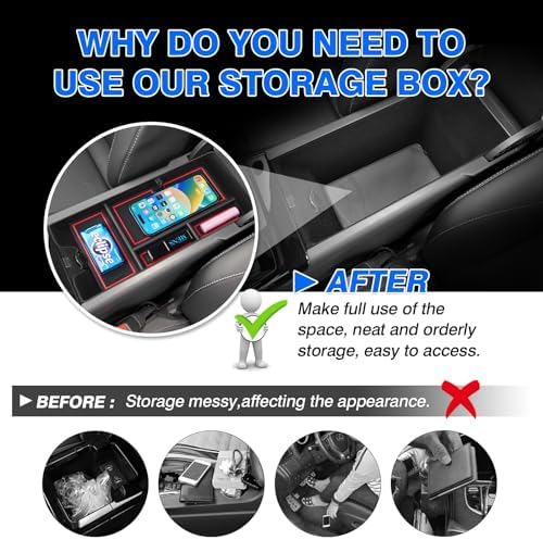 🚗Well-made Organizer—It is made of a durable and sturdy ABS shell. The even edge and smooth surface give the armrest storage box an OEM part appearance. Additionally, the provided tasteless and non-toxic rubber liner effectively prevents items from sliding and rattling.