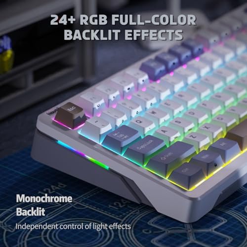 【RGB Backlight】B87 retro keyboard is equipped with 24 RGB lighting effects and monochrome backlight modes. You can switch lighting effects, brightness and speed with simple key operations. Using the supporting software, you can also customize your personalized lighting mode, music rhythm, etc. to enhance immersion.