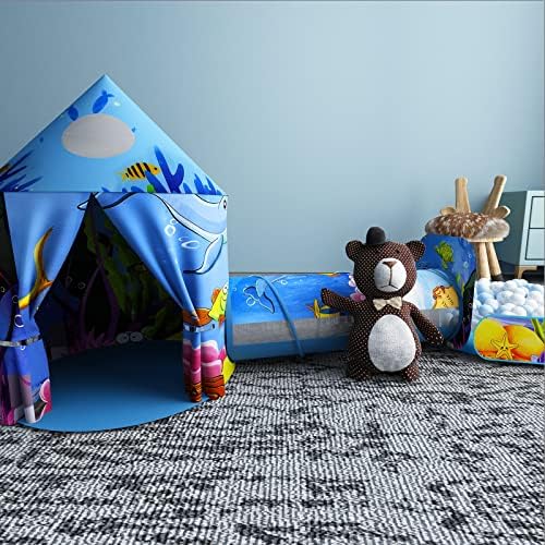 【SIZE AND MATERIAL】 Play Tent: 41.34”*53.15”; Ball Pit: 47.24”*23.62”* 42.52”; Play Tunnel: 47.24”*19.6”. Weight: 3.74LB. Made with 190T Soft Polyester, safe and durable.