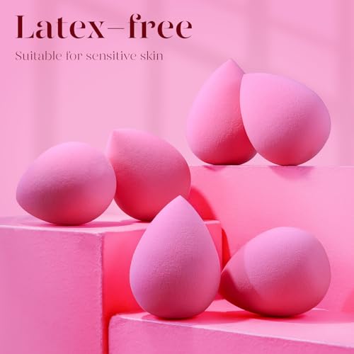 BEAKEY Makeup Sponge Set of 6, Makeup Sponges for Foundation, Liquid, Cream and Powder, Pink Beauty Sponge for Blending, 0 Latex Blender, Ideal Gifts