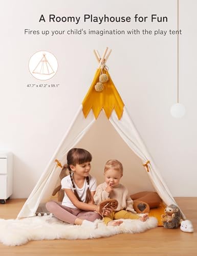 besrey Toddler Teepee with Padded Mat and Lights, Children Teepee, Kids tents indoor Playhouse Play Tent for Kids, Baby Tipee Tent, Large Canvas Childrens Teepee, 100% Cotton Teepee