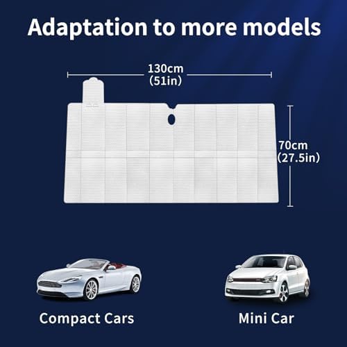 High-Quality Construction and Design: Made from durable materials, our sunshade provides long-lasting protection. The high-quality construction ensures that it stands up to regular use without wear and tear. Its high fit ensures it stays securely in place, providing optimal coverage for your windshield. This sunshade is not only functional but also stylish, adding a sleek look to your car’s accessories. Encounter any issues? Contact us anytime for the most satisfactory solutions. Your satisfaction is our priority!