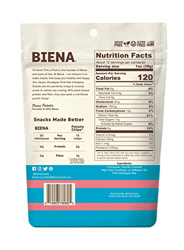 BIENA Roasted Chickpea Snacks – Himalayan Salt, 1 Value Pack – Crispy Salted Chickpeas Loaded with Protein & Fiber – Delicious, Healthy Snacks for Adults and Kids (Pack of 2)