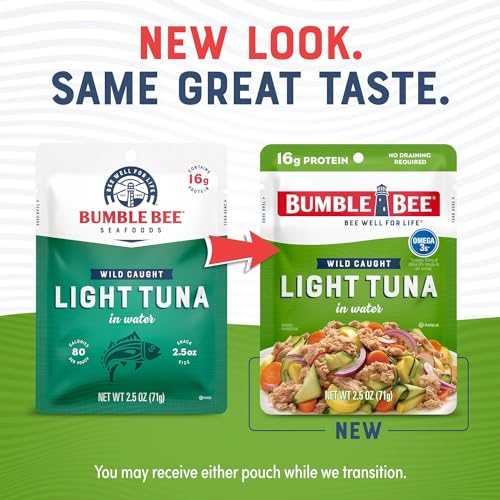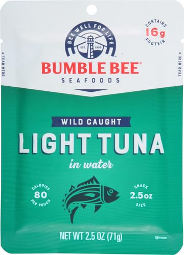 Bumble Bee Light Tuna Pouch in Water, 2.5 oz Pouch – Ready to Eat Tuna Fish, High Protein, Keto Food and Snacks, Gluten Free (Pack of 5)