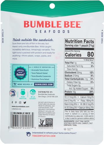 Be the first to review “Bumble Bee Light Tuna Pouch in Water, 2.5 oz Pouch – Ready to Eat Tuna Fish, High Protein, Keto Food and Snacks, Gluten Free (Pack of 5)”