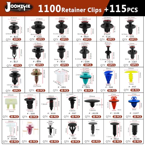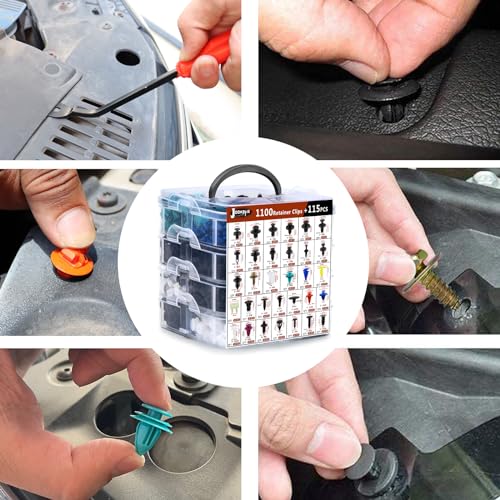 [Universal Car Accessories] – There are 1215pcs in the car bumper repair kit, including most popular plastic clips 1100pcs, cable ties 10pcs, gaskets 100pcs and 4 different kinds tools with 1 red fastener remover.