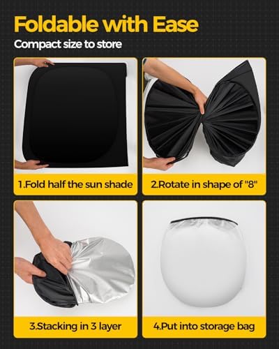 Car Sun Shade Windshield – Foldable Sun Shade for Car Windshield, 4 Layer Nano reflective coating, Avoid The Sun, Keep Car Cool, UV-proof, Good Automotive Interior Protection