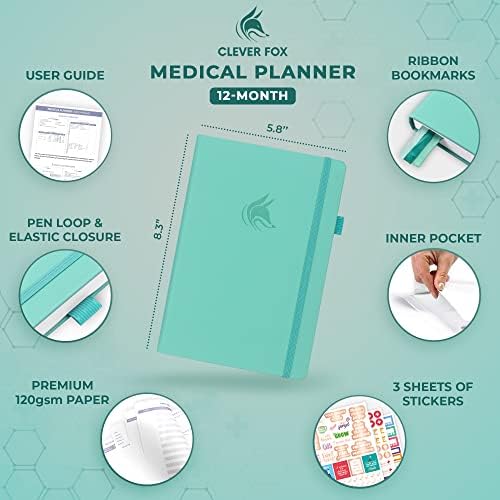 Clever Fox Compact A5 Medical Planner 12-Month – Medical Notebook, Health Diary, Wellness Journal & Logbook to Track Health – Self-Care Medical Journal – 12 Months, Undated (Light Turquoise)