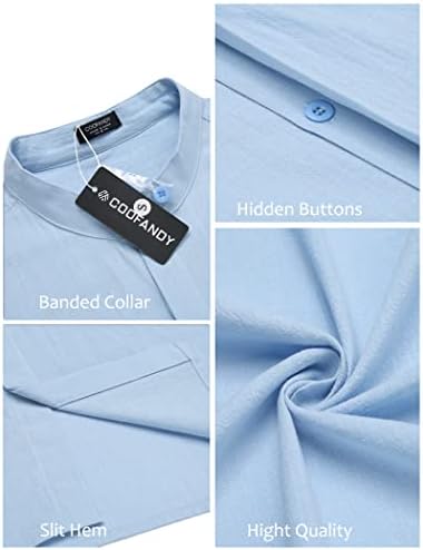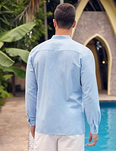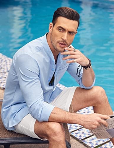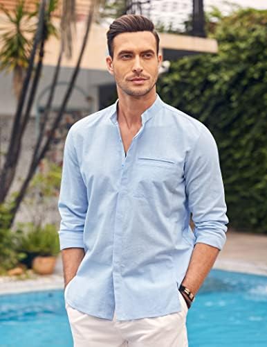 COOFANDY Mens Cotton Linen Shirt Long Sleeve Button Down Shirt Band Collar Beach Yoga Shirts