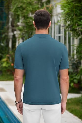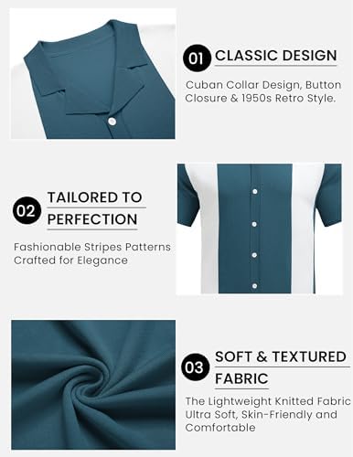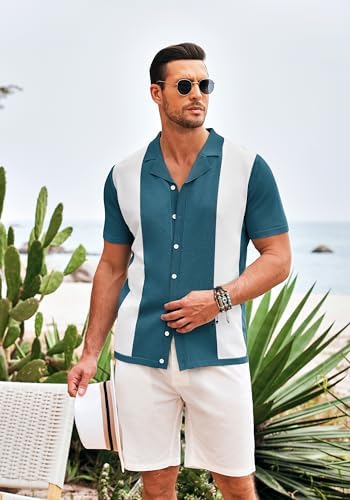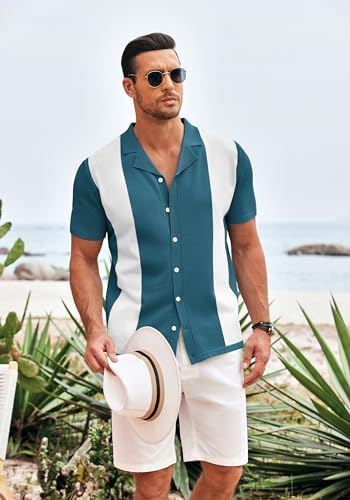 COOFANDY Mens Polo Shirts Vintage Bowling Shirt Casual Button Down Shirts Short Sleeve Knit Shirt Summer Hawaiian Beach Shirt