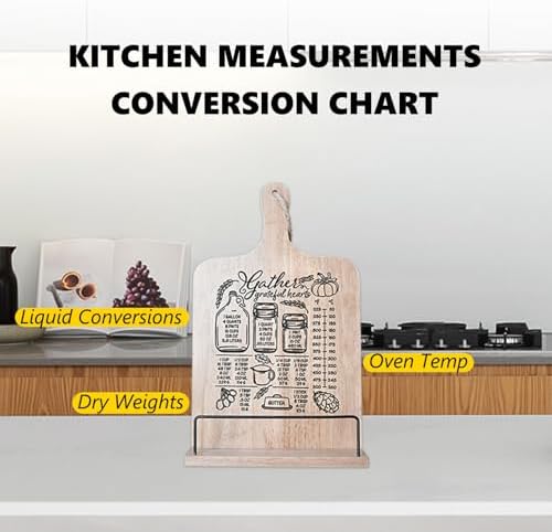 ELEVATE YOUR COOKING EXPERIENCE — The farmhouse cookbook Stand, featuring a charming measurement conversion chart, offers a practical kitchen tool that simplifies the conversion of various measurement units. This is particularly essential in baking and cooking, where recipes often use different measurement standards. With this conversion chart, effortlessly convert ingredient quantities to the preferred units, guaranteeing recipe precision.