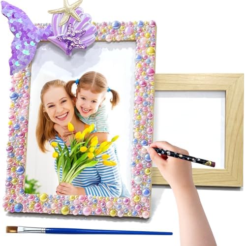 DIY Mosaic Mermaid Picture frames, Arts & crafts 4×6 Picture Frame Diy kit, suitable for 4 5 6 7 8 9 10 11 12 year old boys Girls gift, Colorful mermaid toys for kids arts and crafts supplies
