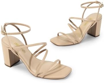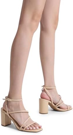 DREAM PAIRS Women’s Heels Chunky Block Strappy Square Open Toe Ankle Buckle Heeled Sandals Wedding Party Dress Shoes