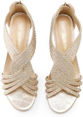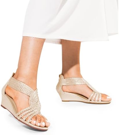 DREAM PAIRS Women’s Wedge Sandals, Comfortable Open Toe Rhinestone Shoes for Party, Wedding, and Fashion Dress