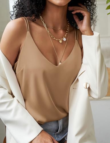 Ekouaer Camisole Tops for Women Satin Strappy Sexy V Neck Tank Top