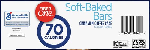 SOFT-BAKED BARS: Fiber One 70 Calorie Cinnamon Coffee Cake Soft-Baked Bars; Delicious treats you can feel good about eating and enjoy as part of a balanced diet