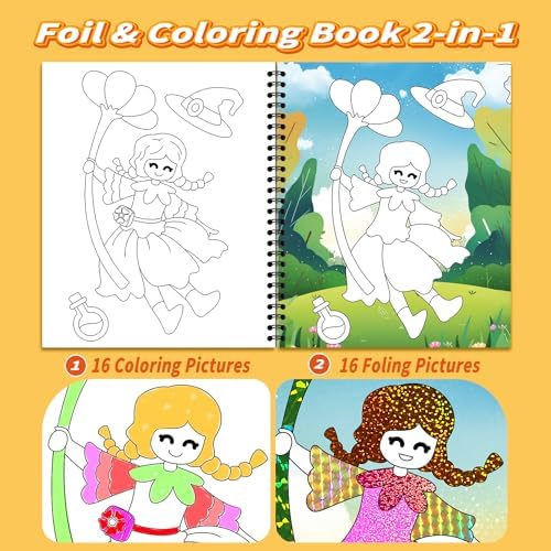 ❥Easy-to-use FOIL and COLORING ART KIT- A portable handbook, 16 foil cards and 16 coloring cards, enough colorful large size foil sheets, Instruction, kids will two ways to use kits: one kit for foil selected pattern by peel-press-sparkle, one kit is coloring pattern back of every page.