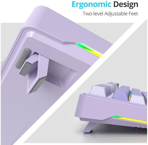 【3-Mode Connection】Geared with advanced tri-mode connection technology, USB-A wired, BT 3.0/5.0 & 2.4Ghz wireless modes.This compact gaming keyboard connects wirelessly via Bluetooth or USB receiver for untethered use on Win/Mac computers