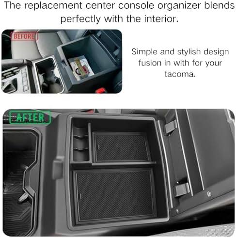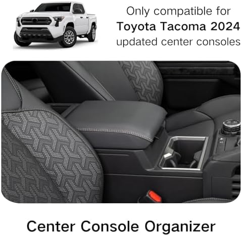 【Perfect Fitment:】 LBNCOBAG middle console organizer for toyota tacoma 2024, SR, SR5, TRD PreRunner, TRD Sport, TRD Off-Road, Limited, Trailhunter, TRD Pro Accessories, Maximize the storage in your Tacoma center console, Keep your armrest storage in a more organized shape.