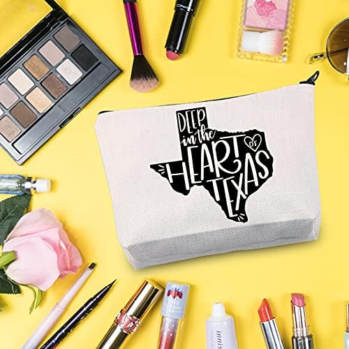 G2TUP Texas Gift Deep In The Heart Of Texas Makeup Bag Lonestar State Gift Texas Love Gift Texas Vacation Bag (Deep In The Heart Of Texas White Bag)