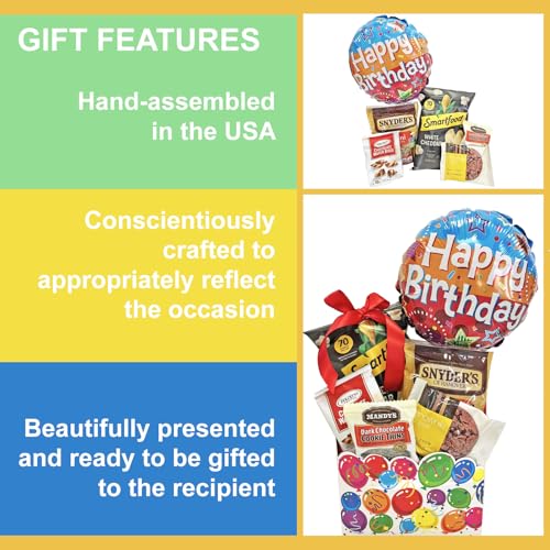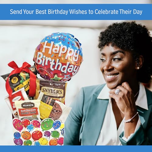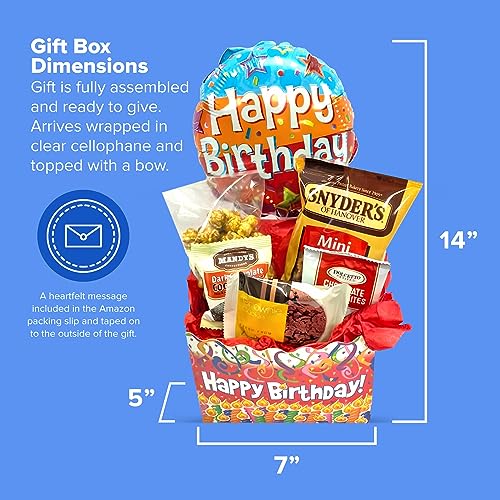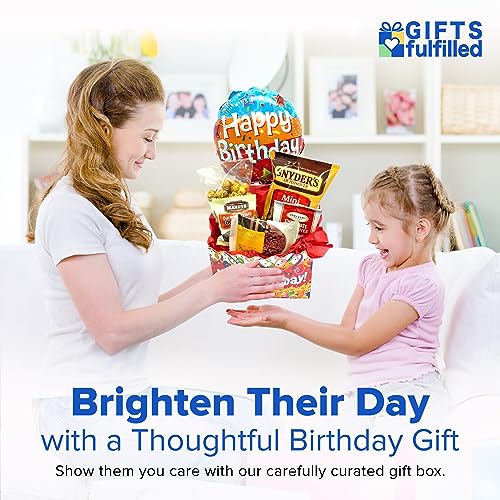 Gifts Fulfilled Birthday Gift Box with Cookies, Snacks, Happy Birthday Balloon for Men, Women, All Ages Unisex Birthday Gift Set for Her and for Him on their Birthday