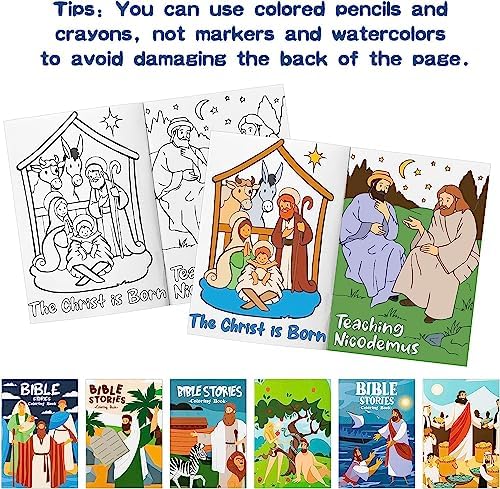 Christian Value Set: The set includes 24pcs christian bible stories coloring books, 6 different cover patterns, 4pcs for each kind. Each coloring book has the same pattern, enough quantity to meet your needs.