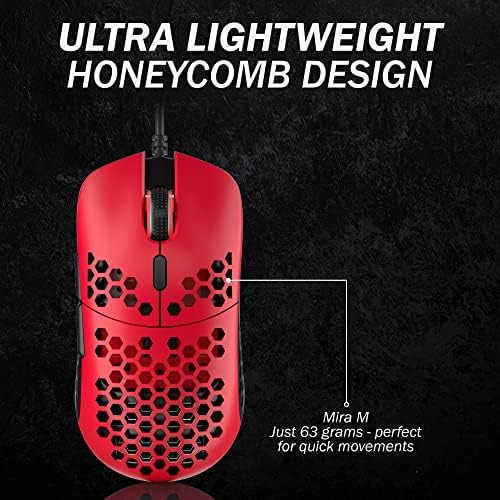 HK Gaming Mira M Ultra Lightweight RGB Gaming Mouse | Honeycomb Shell | 63 Grams | max 12000 cpi | USB Wired | 6 programmable Buttons | On-Board Memory | Anti Slip Grips | Mira-M Monza
