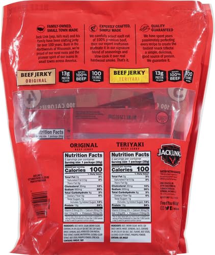GOOD SOURCE OF PROTEIN: Keeping your diet packed with protein helps keep you satisfied and energized all day, and it’s never been easier to get protein than with Jack Link’s beef jerky variety pack. Pack features 4 Teriyaki and 5 original 1.25 ounce bags