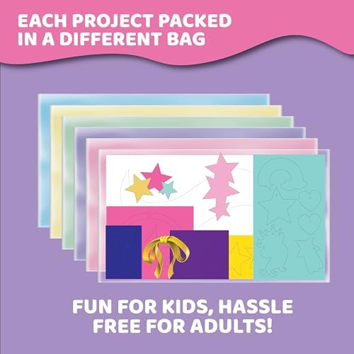 MESS FREE CRAFT KITS – Ready, set, sparkle. Featuring easy-to-follow instructions, your creativity crafts for kids ages 4-8 contain all you need to create your crafts during rainy days or sleepovers—no scissors or glue required.