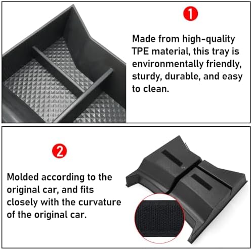 【Premium Material】Our 2023 2024 BMW iX Floor Console Organizer is made of selected TPE material, ensuring reliability, durability, abrasion resistance, and easy cleaning. The unique convex texture design on the tray surface not only enhances anti-slip performance but also effectively reduces the annoying creaking noise caused by item friction.