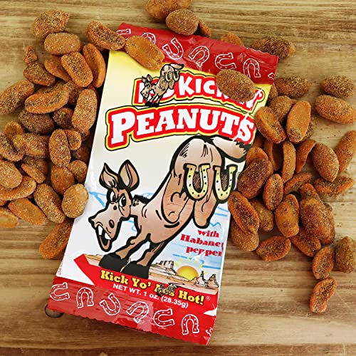 KICKIN’ Habanero Pepper Spicy Hot Peanuts – 1oz 24 Pack – Ultimate Spicy Gourmet Gift Travel Size Peanuts Great on the Go Snack – Try if you dare!
