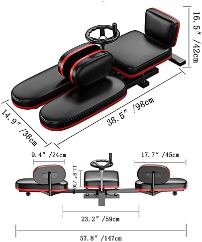 HEAVY DUTY STRETCHING MACHINE—With a compact design size of 15×38.5×16.5Inch, small and not take up space. The maximum size when used is 57.8×7.48×16.5Inch, Backrest size: 9×5.5×1.4inch, Seat size: 12x12x1.4inch, The max load can up to 330lbs