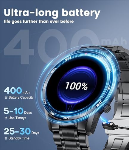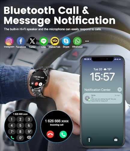LIGE Smartwatch for Android&iPhone-Bluetooth Call, Heart Rate,Blood Pressure Monitoring,IP67 Waterproof,Stainless Steel Band with Silicone Strap,400mAh Battery,HD Touch Screen,Health Assistant