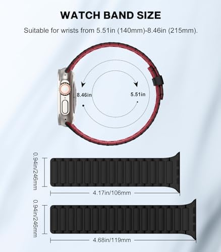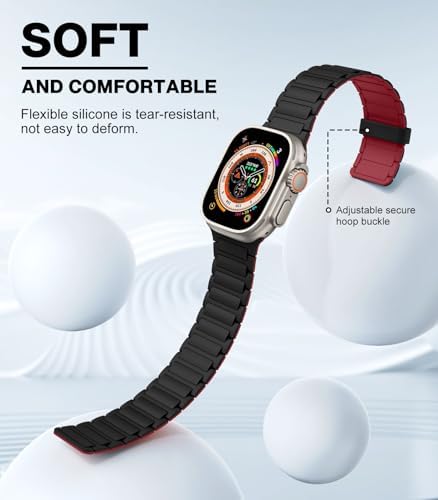 Magnetic Watchband Compatible with Apple Watch Ultra/Ultra2 49mm/Series 9/8/7/6/5/4/3/2/1/SE 42/44/45mm,Soft Silicone Strap Strong Magnet Link Solo Loop Adjustable Replacement Wristband, Black/Red