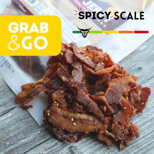 🥓 Fully cooked bacon! A High Protein Snack perfect for those shopping for paleo snacks and healthy kid snacks. Great for lunch boxes, school lunch. We also have Bulk beef jerky sticks options.