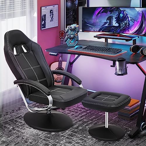 MoNiBloom Gaming Chair with Ottoman, Adjustable Backrest Racing Style PC Computer Office Chair, PU Leather Widened Seat for Gaming and Home Office, Black