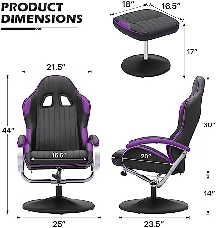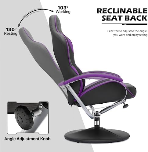 MoNiBloom High Back Video Gaming Recliner with Ottoman, PU Leather Racing Style Swivel Recliner, Adjustable Backrest for Gaming and Home Office, Purple and Black