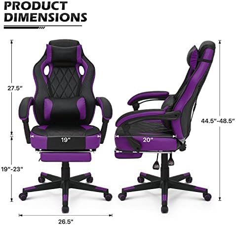 Be the first to review “MoNiBloom Reclining Computer Chair with Footrest & Detachable Lumbar Support 360 Degree Swivel Racing Style PU Leather Computer Gaming Chair with Headrest for Home Bedroom Office, Purple”