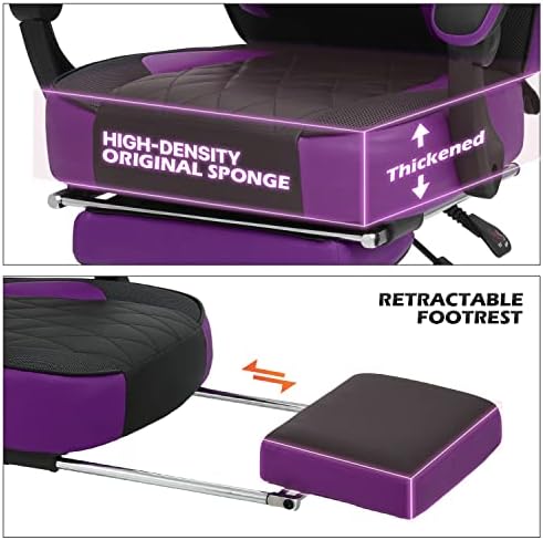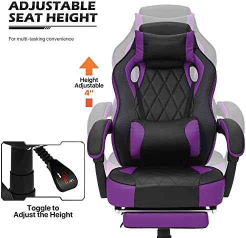 MoNiBloom Reclining Computer Chair with Footrest & Detachable Lumbar Support 360 Degree Swivel Racing Style PU Leather Computer Gaming Chair with Headrest for Home Bedroom Office, Purple