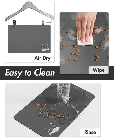 Keep Clean & Easy Care: Unlike traditional dog mat for food and water bowl, this easy care pet feeding mat won’t pick up pet hair or dust. Simple wipe or rinse can solve any usage traces. After washing, just wipe clean the dog food mat’s backing and put it back, the surface will air dry quickly. Makes cleaning a breeze.