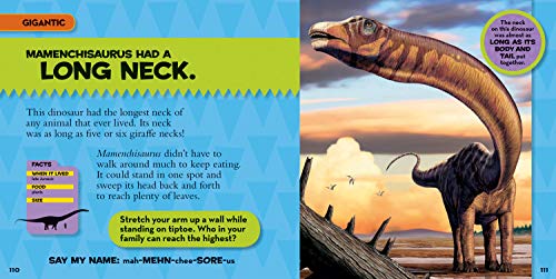 The third title in National Geographic Little Kids First Big Book series, this book is for kids 4- to 8-years-old who LOVE dinos! The prehistoric world comes alive with dinosaurs small, big, giant, and gigantic, with stunning illustrations by Franco Tempesta—who illustrated National Geographic Kids The Ultimate Dinopedia. Bursting with fun facts and age appropriate information, each spread features a different dinosaur, along with simple text in big type that is perfect for little kids. Young dino fans will love the interactivity included in every chapter, and parents will appreciate tips to help carry readers’ experience beyond the page.